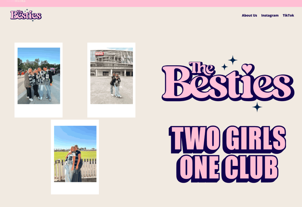 The Besties are two girls named Tori & Jasmina who run a social media page on Instagram and TikTok, all about their love of the Carlton Football Club. There content is engaging and relatable content with their passionate fans and wanted to create a safe space for women to talk about the AFL and the team they support. My intention was to create a dedicated website platform that acts as a source of information and encourage people to explore the Carlton Besties. Created in Framer, using the established colours, typography and imagery already used. I wanted to stay true to how they present themselves online and just transfer that creative aesthetic to a fully functional website. Timeline: May 31st - June 10th 2025