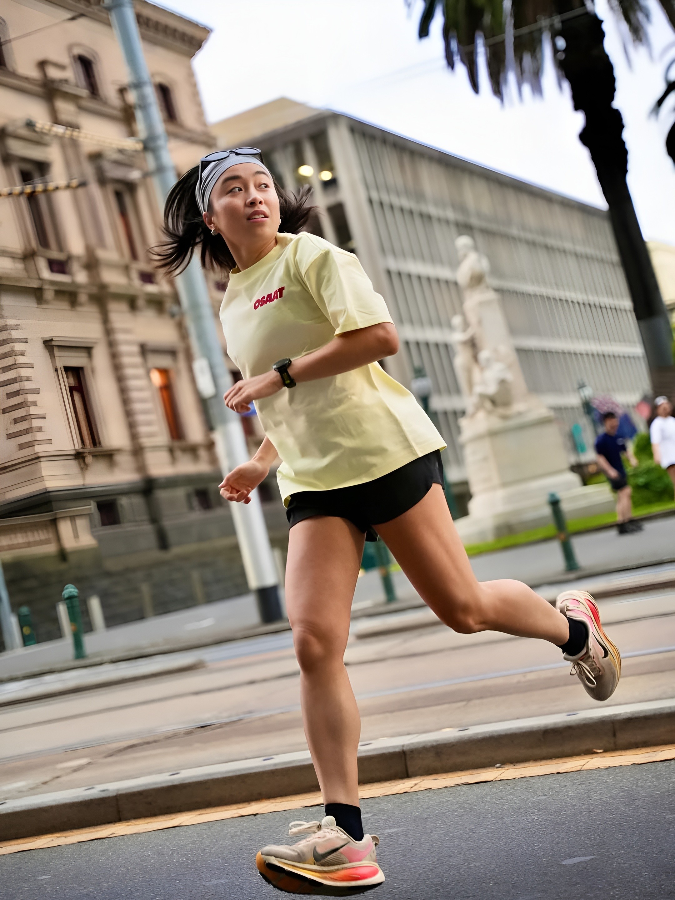 OSAAT (One Step At A Time) is a local Melbourne running club that fosters a strong community of people who all enjoy running. They have interval trainings on Tuesday at AAMI Park and Sunday long runs on the weekend. I’ve always been a runner. Enjoy a good 10km by myself. One day, I discovered this running club and thought of giving it a shot. Instantly fall in love with the community that OSAAT was creating. Seeing a bunch of people having a good time and celebrating everyone wins. I was approached by Bryan Khoo, one of the co-founders, and we started collaborating. Our goal was to create a cute and cartoonish design. With big imagery on the back, inspired by the rubber hose animation style. Screen-printed: At Cherry Studios on 100% Cotton T-Shirts with 245gsm Colours: Fluro Pink + White, Navy Blue + Off White and Red + Lemon. Timeline: September 3rd to September 18th, 2025